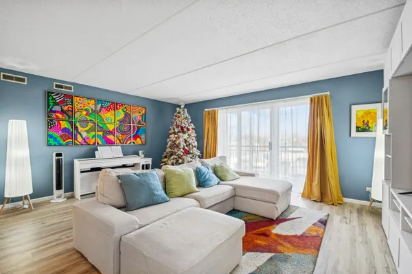 Welcome to this well-maintained 2-bedroom, 2-bath condominium located in the highly sought-after GlenLake community. This spacious unit offers approximately 1,750 square feet of comfortable living space and features vinyl flooring, well-connected living and dining area, and a private balcony. The kitchen offers ample cabinet space, ideal for everyday living and entertaining.The building includes a heated garage parking space (#4), additional guest parking conveniently located in front of the building, an elevator and extra storage space. The building is pet-friendly, and the unit features in-unit laundry for added convenience.Situated in a quiet cul-de-sac community, residents enjoy amenities including a pond with fountain, community pool, and jacuzzi, all within a well-kept and professionally managed association.Ideally located just minutes from I-90/I-94, CTA buses, the Blue Line, and O'Hare Airport, with easy access to Harlem Irving Plaza, the Rosemont Entertainment District, parks, restaurants, shopping, and within walking distance to grocery stores, Wright College, and other neighborhood amenities.