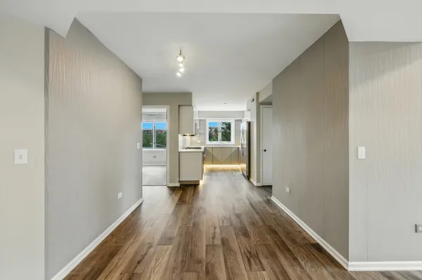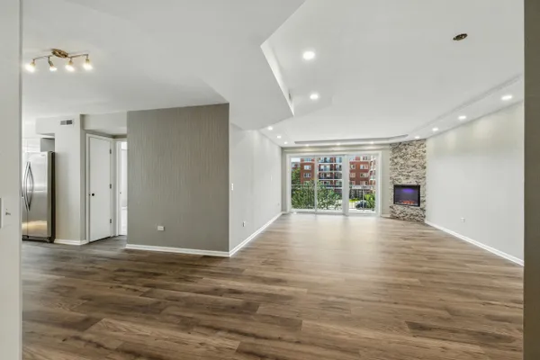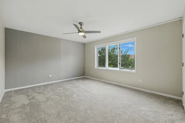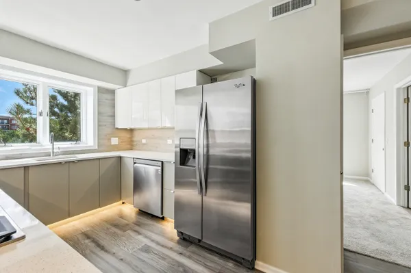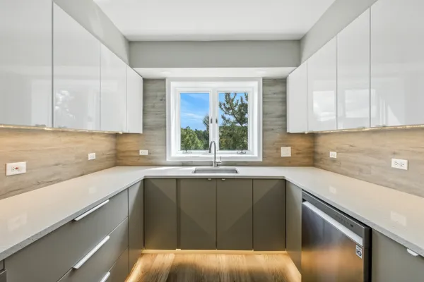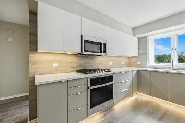 Spacious and updated 2-bedroom, 2-bath end-unit condo in elevator building at Glen Lake Condominiums | Brand-new kitchen, new flooring throughout, and fresh paint | Open and spacious layout with large living/dining area and oversized private balcony | Bright unit with tranquil pond and pool views | Full-size in-unit laundry room | Both spacious bedrooms feature walk-in closets | Primary bedroom with en-suite bath | Secure building with elevator access | Heated indoor garage parking (1 space included) plus guest parking outside | Additional private storage room | Resort-style amenities: outdoor pool, Jacuzzi, walking paths, and pond with fountain | Pet-friendly | Convenient location near shopping, Wilbur Wright College, I-90, and O'Hare Airport